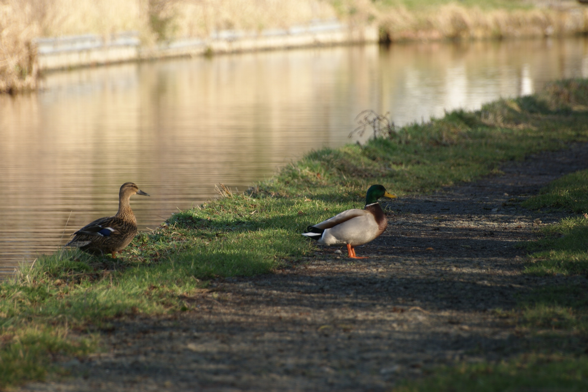 There was a lot of wildlife along the canal including these two wild ducks playing on the path. We must have spooked them because they didn’t hang around long, and jumped into the canal to go and hide in the reeds on the